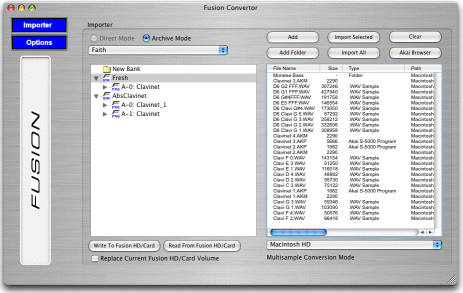 April 2, 2006 - Alesis has released the new free Fusion Convertor OSX 1.1, based on the new Translator Mac engine and written by Chicken Systems. It has the same facilities and features and the Windows Fusion Convertor.