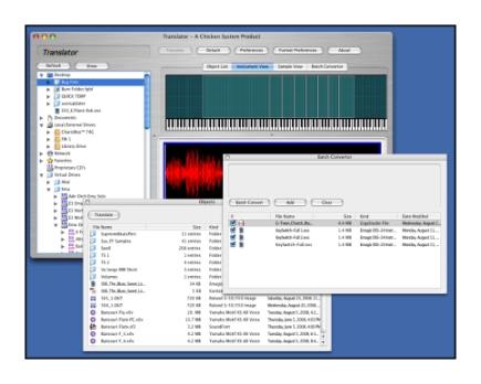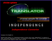 November 2, 2006 - Chicken Systems releases the new free Independence Convertor. This handy Windows and Mac utility converts all Akai S-1000/3000 and SoundFonts into Yellow Tools Independence native format. Chicken Systems also incorporates full Independence support into Translator 2.9 build 105.