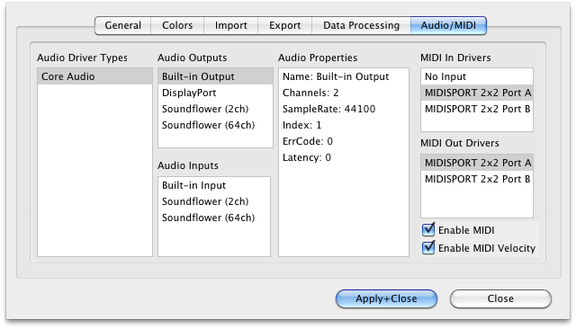 Allows you to select the current MIDI Out driver that your application will send MIDI out from. (Note: not useful in MV Kit Creator™ LE or MV Kit Creator™ Free.)