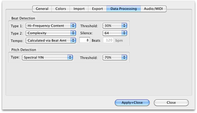 It is vitally important to pay attention to these Beat Detector preferences. The defaults work for most clear and simple beats, but they definitely will not work with everything. You will need to experiment with these on a case-by-case basis, but keep trying, there usually is a solution to any rhythmic piece of data.