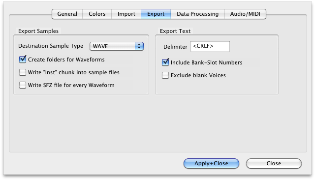 Fantom Creator allows you to export the samples in the Fantom Document out into single samples; this option selects the type. They can be WAVE, AIFF, CAF, or Akai SND files.