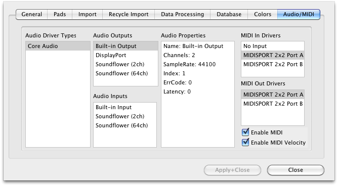 MV Kit Creator now has a Beat Detector, giving the ability to import Slice Files. Anytime you import a Recycle file, or a ACID/AppleLoop (when Preferences - Import - ACID/AppleLoops is checked), MV Kit Creator pays attention to Recycle Import Preferences and imports the loop on the desired Pad or splits them up on adjacent Pads.