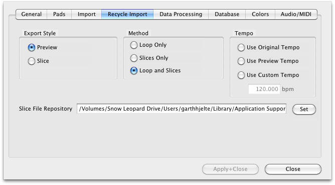 This involves when you extract the entire loop. Use Original Tempo extracts the sample data as-is. Use Preview Tempo applies to Recycle only and it pays attention to the Preview Tempo parameter inside the Recycle file. Use Custom Tempo allows you to customize the tempo so the extracted loop will be that tempo.