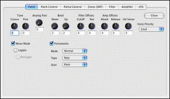 | Go to: | Patch | Patch Control | Partial General | SMT | Amp | Filter | LFO |