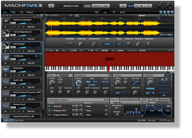 UVI recently took the program back - and MachFive 3.2 is the last version to be produced by MOTU as of this writing. UVI is continuing to support it in a big way. Falcon - at least the first versions - is identical to MachFive 3, although they removed most of the internal "universal conversion" features. MachFive was (and is) marketed heavily (MOTU is skilled at that), and the interface looks absolutely stunning. However, the smallness of the print and crowdedness makes it less ergonomically viable - although there are workarounds of it. Mach Five 3 is a much better interface and is actually ergonomically pleasing. It comes in Windows and Mac versions, and is a "plugin" sampler - meaning it does not work standalone as it's own application. One of the marketing points of Falcon/MachFive is the universality of it - saying that it works with all plugin formats and loads any type of sound. That's nice, but it's an invalid claim - a standalone sampler such as Kontakt or GigaStudio is just as universal if not moreso in that it doesn't rely on being compatible - and with conversion programs like Translator such "universality" is existant with any sampler! Synthesis and File Structure Performances (.m5m files) are collections of Presets, just as you'd expect, but Performances also hold the "dimensional" parameters, such as KeySwitching, Controller switching, and even crossfade parameters. Architecture Description The current version of Falcon/MachFive streams from disk. The Performance files allow keyswitching and other dimensional attributes to be used with Presets - in contrast to other samplers which put this info in the instrument unit/Program itself. Native Format Support Translator performs the same conversions with more accuracy and reliability ,and allows many more options than the included utility. Translator Comments and Tips Translator also creates Performance files when necessary - when keyswitches and controller switching are implemented. Comments |