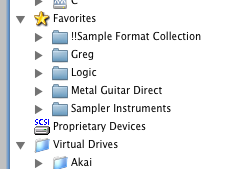 Favorites are contained in a special section in the Container Pane. It is a section you populate yourself with commonly-used folders, or folders you want quick access to. Very handy!