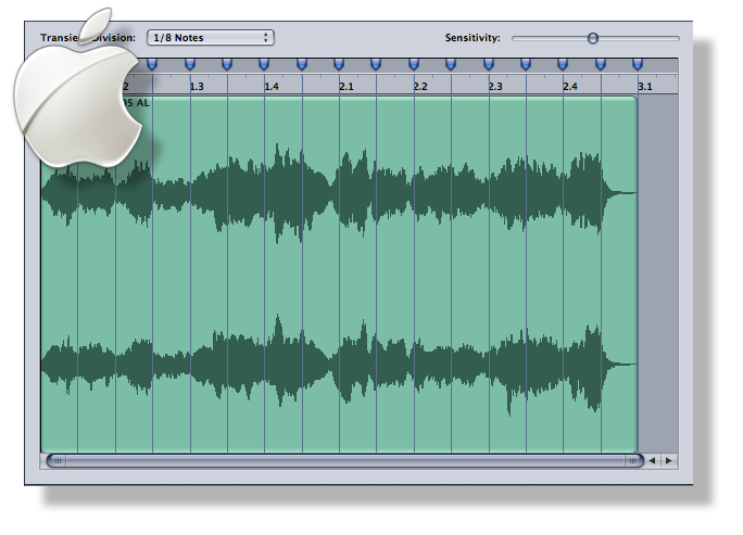 AppleLoops also feeds Apple's SoundTrack Pro product. Synthesis and File Structure An AppleLoop is sort of a AIFF version of an ACID file, it's an AIFF file with extra chunks. Again, and it can't bear repeating, but it's what a Slice File is - a single piece of audio data with a set of markers. Part of the problem with AppleLoops is that there is not one superstar utility that creates them, like ACID or Recycle do with their native formats. The AppleLoop Utility still is the only app that creates these files, and it is so-so. It is free and has gone under several feeble incarnations. AppleLoops, due to the Utility, seems to place emphasis on the Grid; that is, the beat detection does detect "beats", but also lays out a time grid to facilitate you knowing where the actual timed beats are occurring, so you can see how the actual played ones line up. But again, once you save the AppleLoop, none of this matters. It devolves into a single audio file with markers, which is all that a slice player needs. |