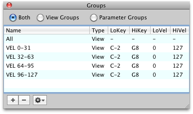 A Constructor™ Instrument Document supports the concept of View Groups. A View Group is simply a collection of Sample References that you want to see at a single time; that is, to filter out what you are seeing in the KeyMap window and the Sample Reference List.